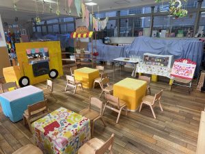 お店の品物を作ったり、部屋の飾りを作ったり、みんなで一緒にすることの楽しさを感じながら作る経験を重ねてきました。