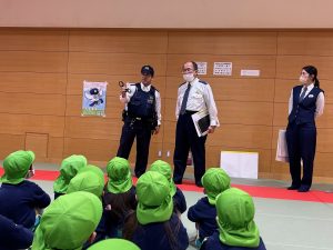 本物の手錠を見せてもらったり、交通ルールの話を聞いたりしました ☆