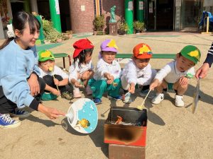 焚き火でぬくぬく♡ お芋をあぶっていただきました♡