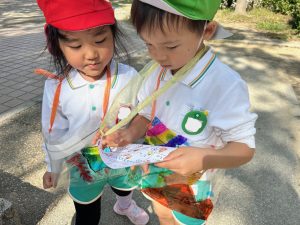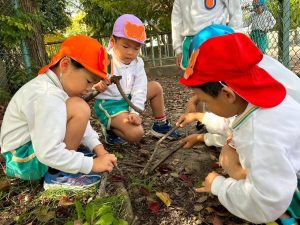 戸外でのびのび自然物にも触れて遊べるのも魅力♡
